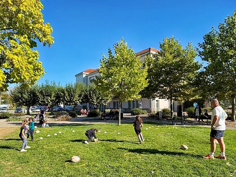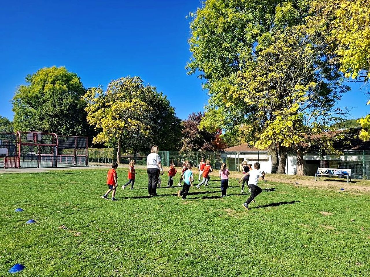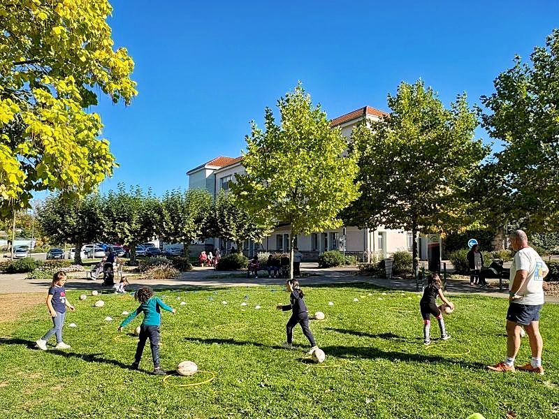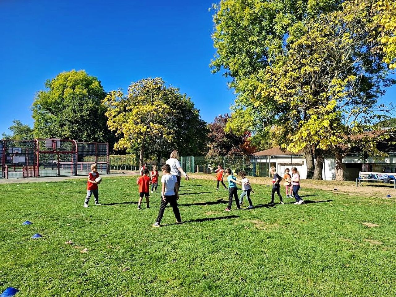 En septembre et octobre, les 3 classes de CP ont bénéficié de 3 interventions rugby animées par Cyril et Laurence éducateurs au club AIXE RUGBY ATHLETIQUE.